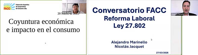 El segundo Conversatorio estuvo dedicado a los “Principales aspectos de la reforma laboral”, donde se presentaron los cambios más relevantes introducidos por la normativa recientemente aprobada, con especial foco en su impacto en la gestión de cooperativas y mutuales, en su condición de empleadoras. La actividad, a cargo de Alejandro Marinello y Nicolás Jacquet, generó un intercambio activo en torno a los efectos inmediatos que tendrá la nueva legislación en el mercado laboral, abordándose con detalle los cambios más significativos en los vínculos laborales individuales, como así también en la actividad gremial, los programas de incentivo al empleo y el Fondo de Asistencia Laboral. Atendiendo los comentarios de los participantes, que destacaron la utilidad de estos espacios de información y debate, la FACC programa nuevos encuentros virtuales para los próximos meses, continuando el análisis de problemáticas actuales comunes a nuestras organizaciones y el intercambio de estrategias para la toma de decisiones en las entidades del sector.